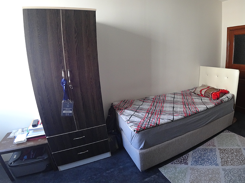 Odamız çift kişilik oda olmakla birlikte bir kişinin ihtiyacı olan herşey mevcuttur.Odamızda tüm yaşam giderleri dahil (herey dahil) ücret verilmektedir.